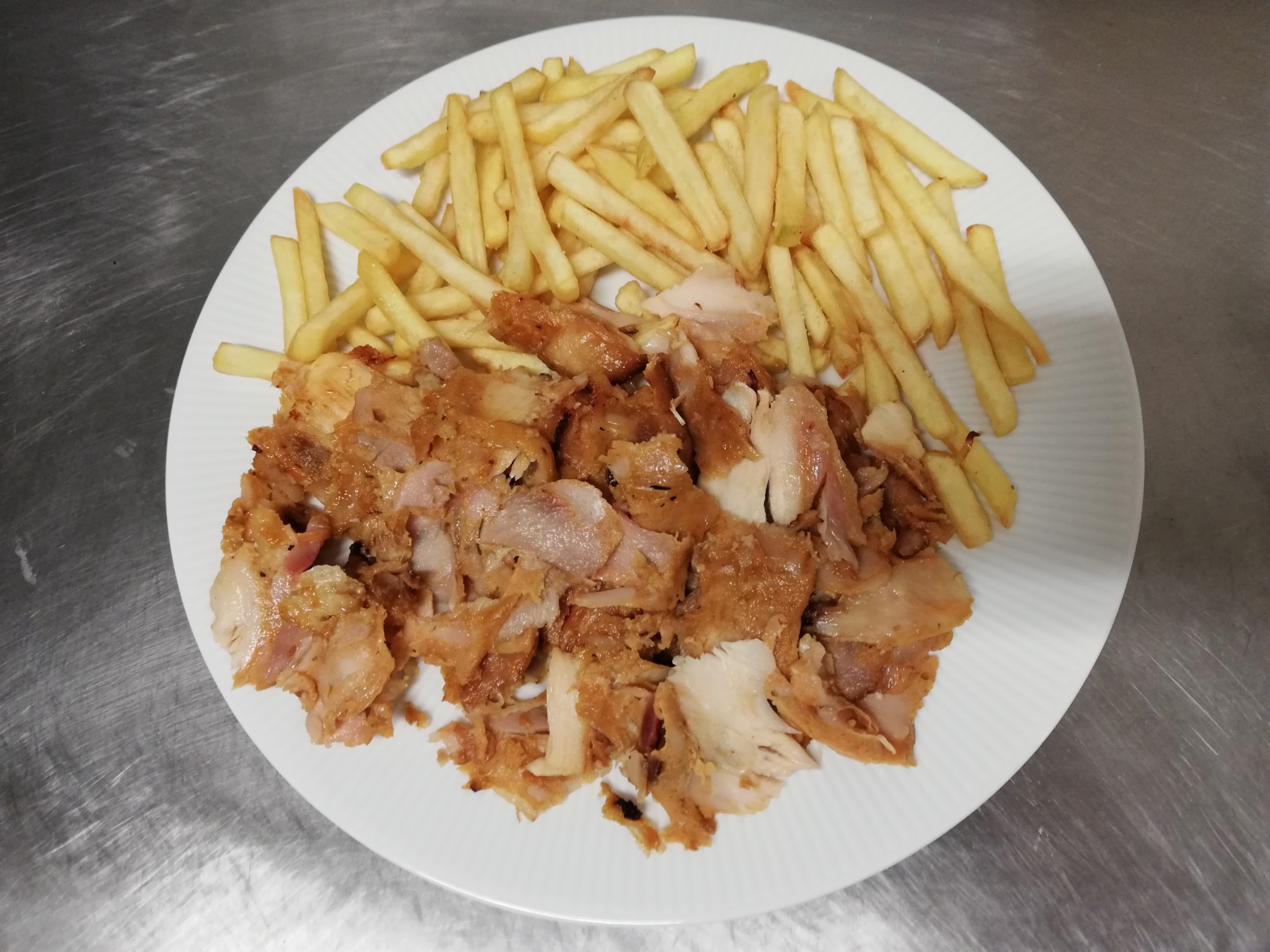 400g, kebab mäso, zelenina, dressing, chlieb + Hranolky (150g) + Pepsi-Cola (0,33l)